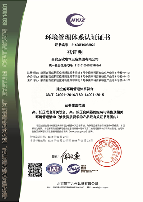 環(huán)境體系證書: